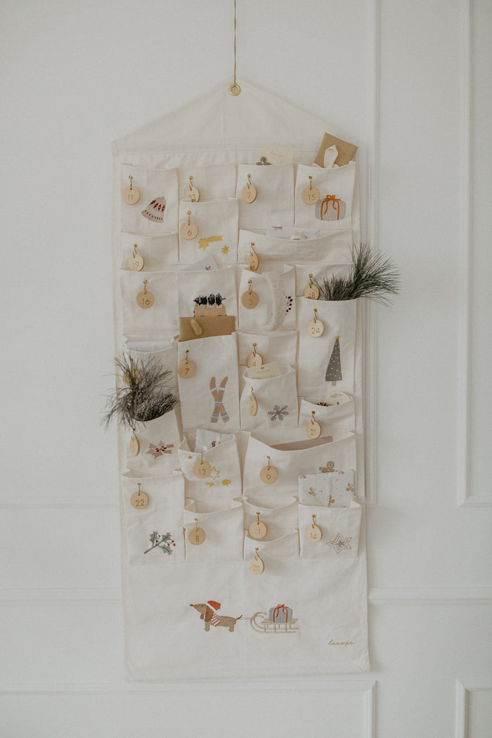 A beautiful Advent calendar, printed with hand-painted illustrations, which offers space for 24 little things that will sweeten the Advent season for you and your Little Ones.