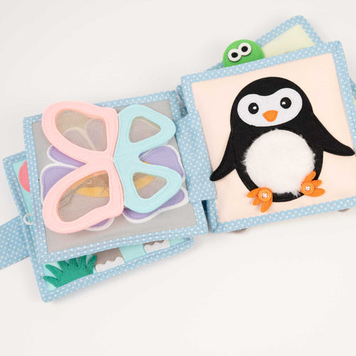 The lovingly designed Quietbook with various motifs contains numerous small and large details and clear colors and shapes and invites your Little Ones into the colorful realm of animals and nature.