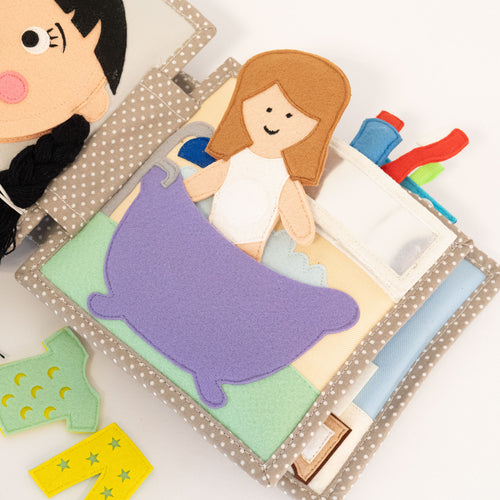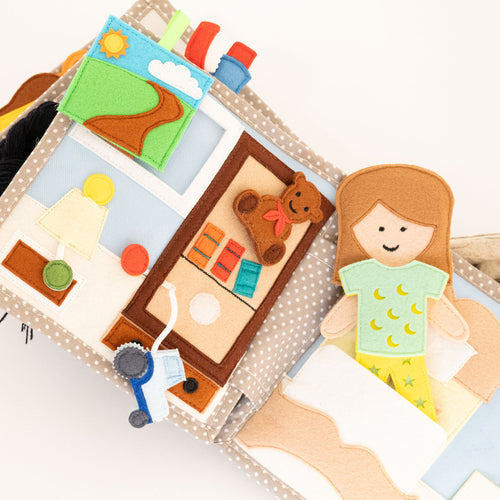 Quiet Books fördern u.a. die Geschicklichkeit, die Sprachentwicklung, den Pinzettengriff, die Auge-Hand-Koordination und die Hand- und Handgelenkmotorik.
