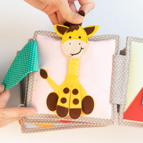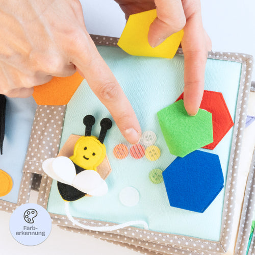 Das liebevoll gestaltete Quietbook mit verschiedenen Motiven beinhaltet zahlreiche kleine & große Details und klare Farben & Formen und lädt Eure Little Ones zu einer bezaubernden Entdeckungsreise ein.