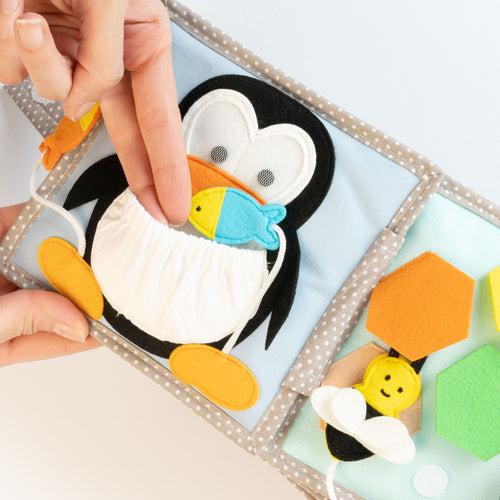 Quiet Books fördern u.a. die Geschicklichkeit, die Sprachentwicklung, den Pinzettengriff, die Auge-Hand-Koordination und die Hand- und Handgelenkmotorik.