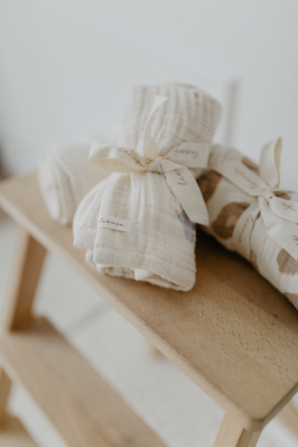 Die vierlagigen Musselintücher aus 100 % weicher Bio-Baumwolle sind die idealen Begleiter für Dich und Dein Little One. Sie sind herrlich sanft zur Haut & ganz vielseitig einsetzbar – sei es als Spucktuch, leichte Decke oder zum Kuscheln. Mit großzügigen 120 x 120 cm schenken sie Dir täglich Komfort & sind ein besonders liebevolles Geschenk zur Geburt.