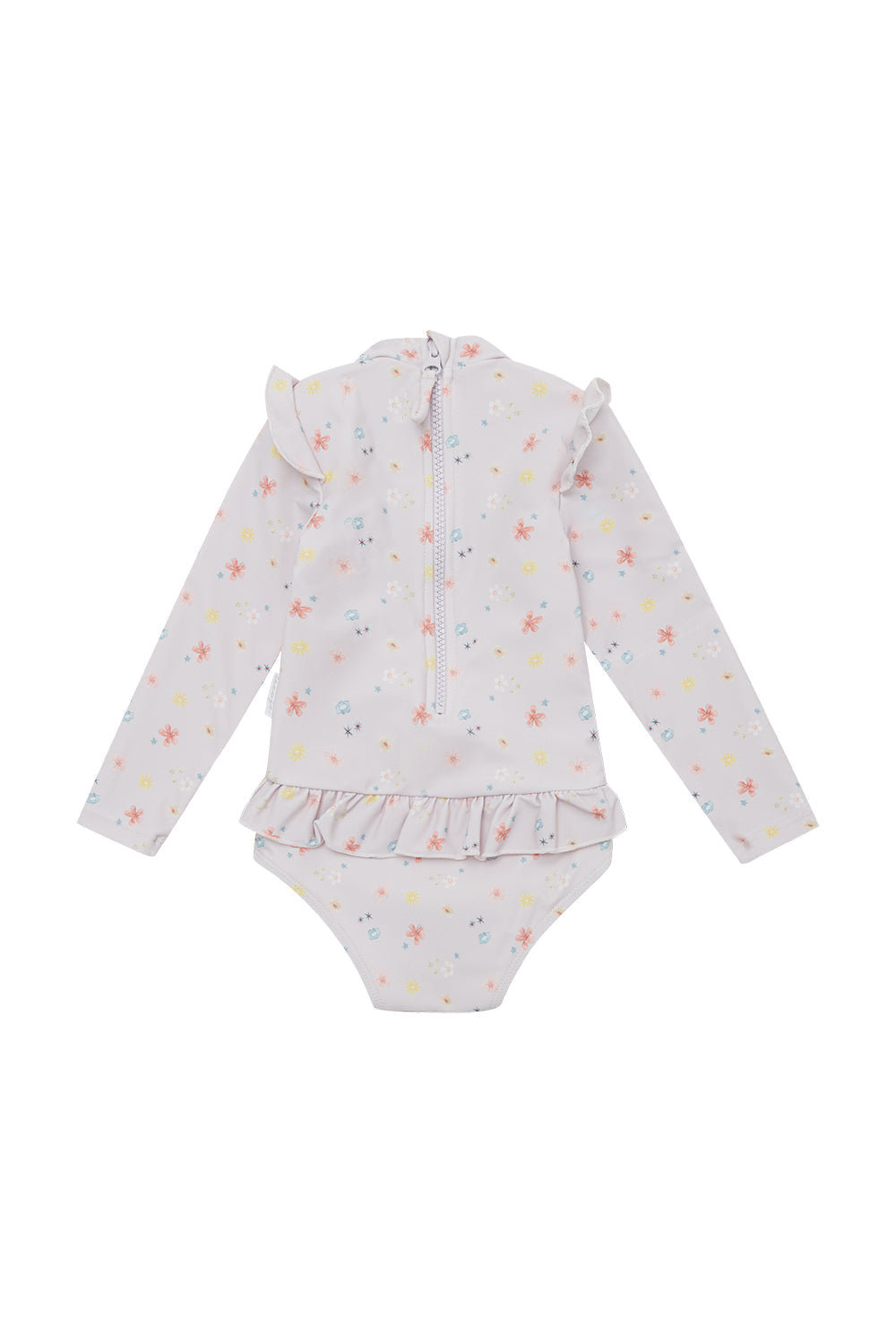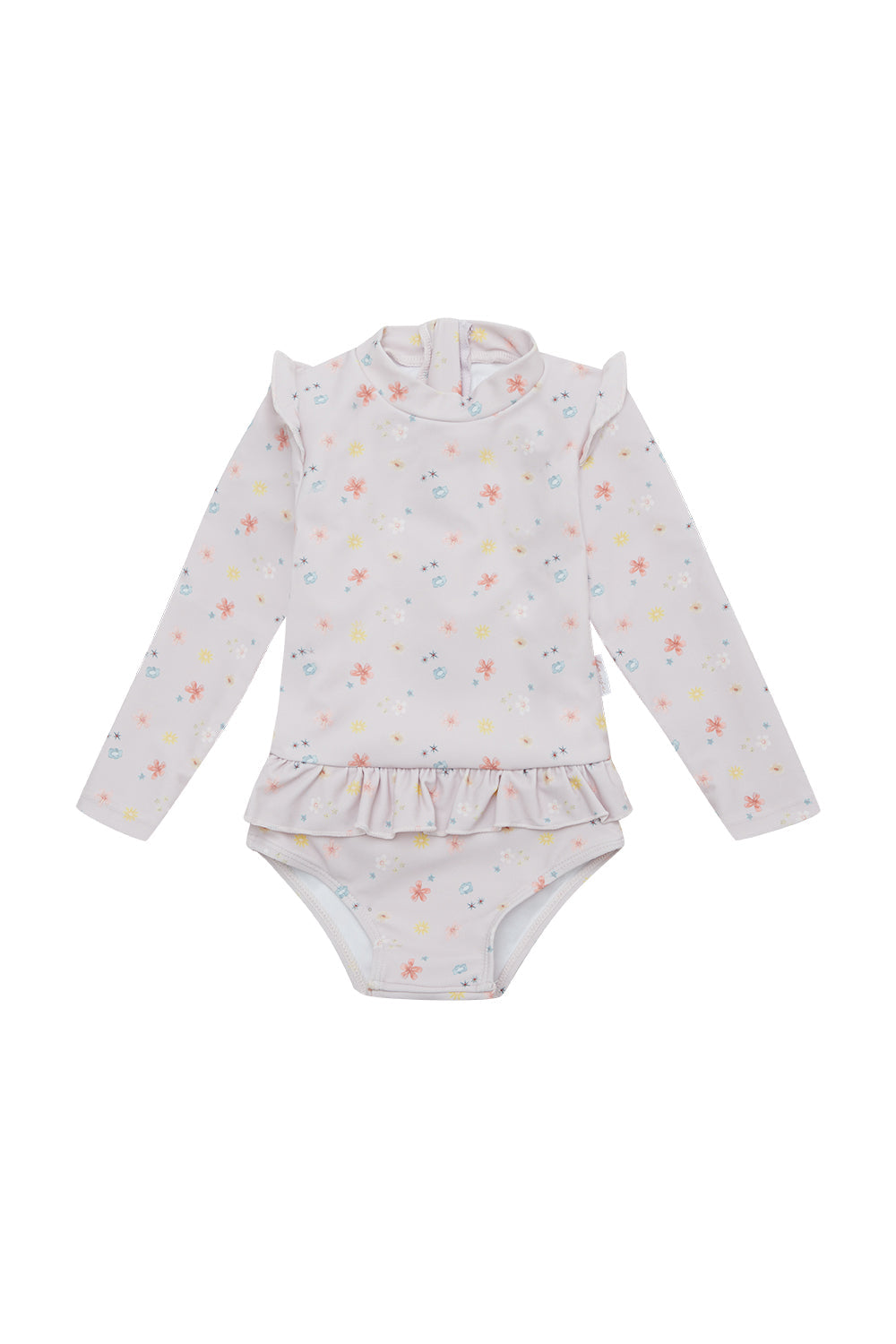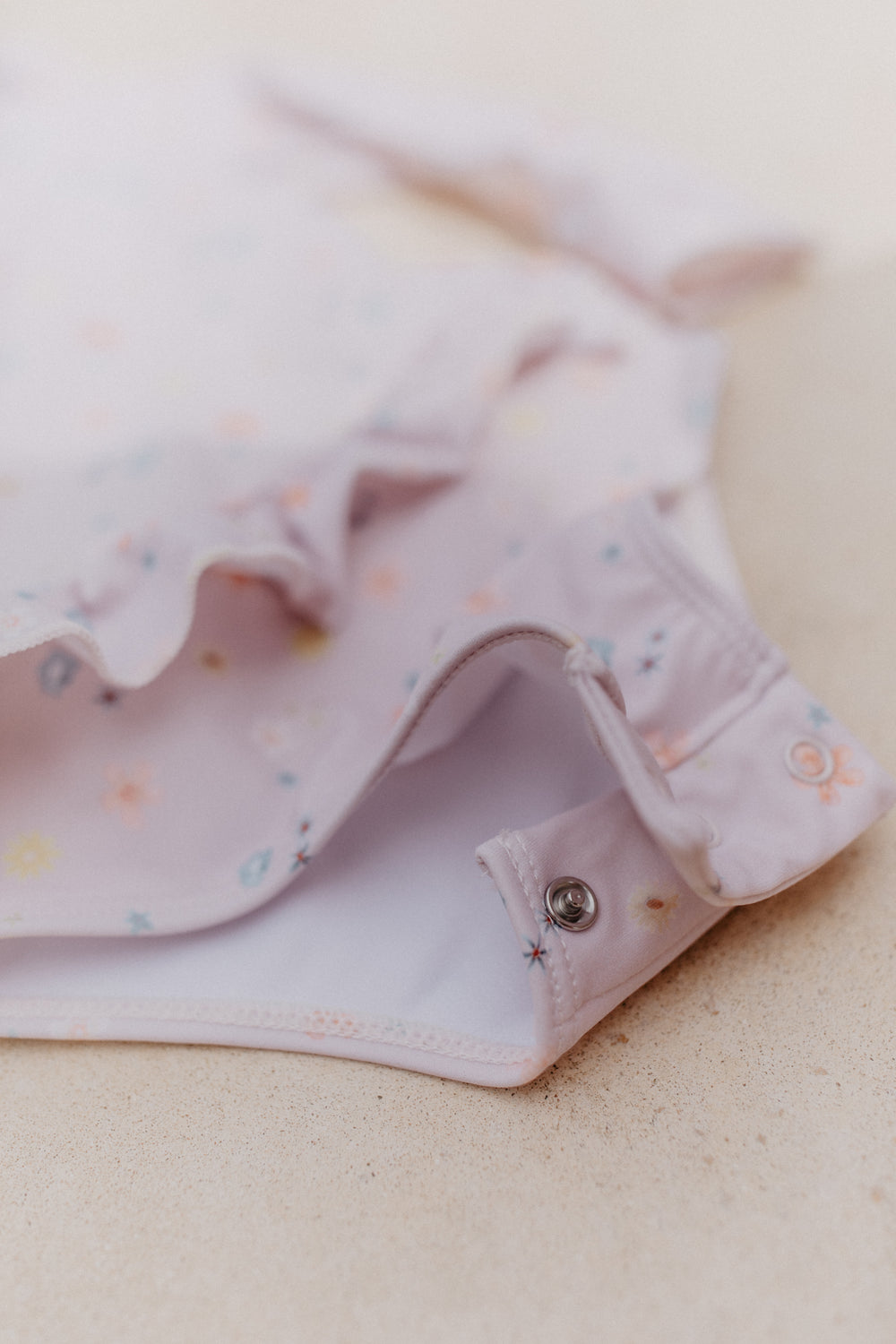 Nicht nur süß, sondern auch funktional! Mit UV-Schutz, langen Ärmeln, Rüschen an der Schulter, einer Knopfleiste hinten und einem süßen Blümchen-Print, ist dieser Badeanzug perfekt für sonnige Tage am Strand. Ein Muss für den Sommer!