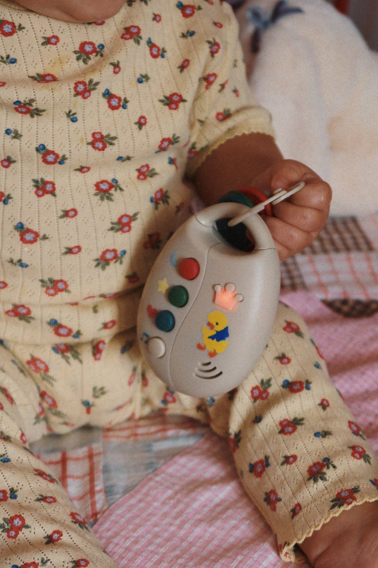 Lass deine Little Ones unbeschwert mit einem Schlüsselset spielen, das sie bedenkenlos herumwerfen und auch in den Mund nehmen dürfen. Es ist mit einem sicheren Beißring für empfindliches Zahnfleisch ausgestattet und bietet zudem verschiedene unterhaltsame Musikoptionen zum Entdecken, wie zum Beispiel: